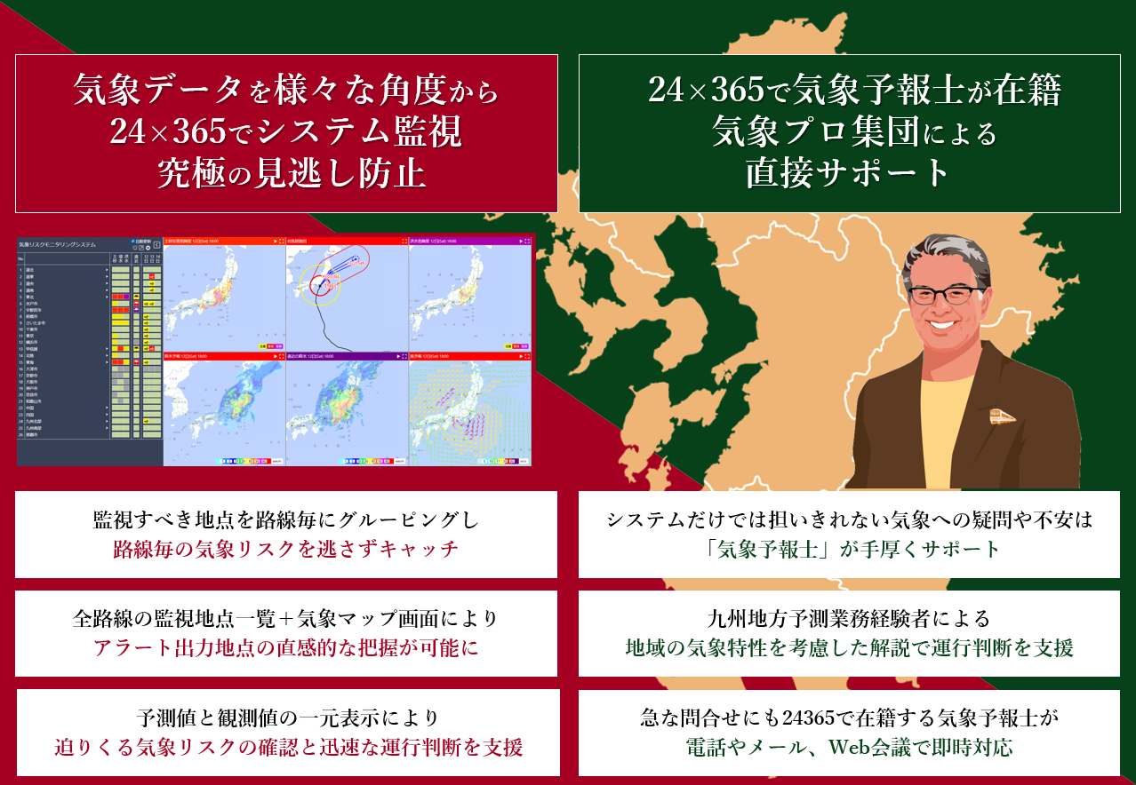 また、システム監視だけでは担いきれない気象現象への疑問や不安に応える「気象予報士サポート」でより的確な運行判断を支援。